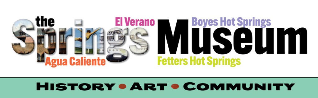 The Springs Museum is under construction! We will gladly accept your donations of artifacts, memories, photographs, or just about anything else. We also accept monetary donations, but we are not yet a nonprofit corporation. Contact us at ackermichael6@gmail.com or PO Box 1959, Boyes Hot Springs, CA 95416 THANK YOU!