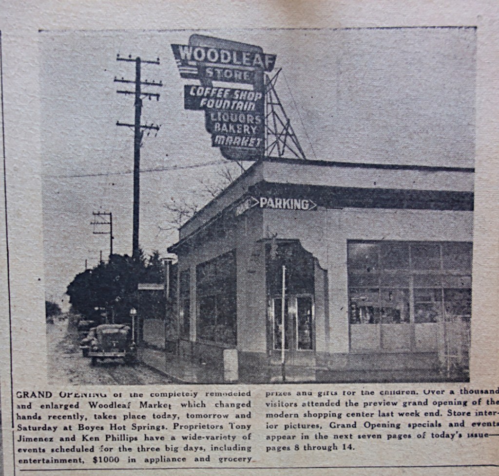 Her Woodleaf store was in the Kellar building in 1932, we are told. The same year she move “across the street” to the Putnam building, which presumably was the building at the corner of Boyes Blvd and Sonoma highway, where the Woodleaf Store stayed as it later became the Big Three. In 1938 Ms. Greene was appointed the Greyhound Bus agent for the Springs as well.