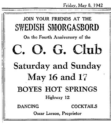 In 1942 they celebrated the fourth anniversary of the club with a Swedish smorgasbord.