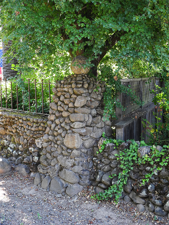 Also in 1939, they bought a stucco house on property near the corner of Verde Vista and Arroyo Rd. in Boyes Hot Springs. The house was known by neighbors as “Larson’s Villa,” and by the Larson family as “Valhalla.” The house still stands in 2021, though the land was sold and subdivided in 1989 and new houses were built. The original stone walls and pillars, some fairly recently restored, still grace the street, and continue to cause curiosity. Other stone work has not survived.