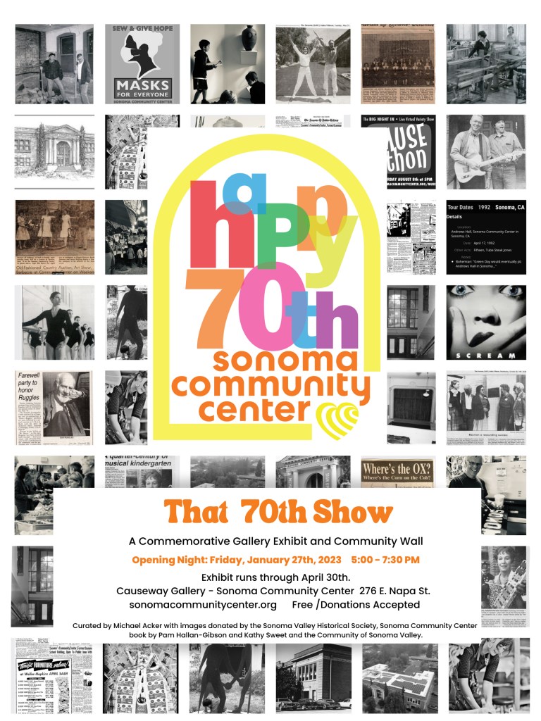 For the past three months we have been working on “That 70th Show,” the celebration of seventy years of Sonoma Community Center history. Viewable through April. And…