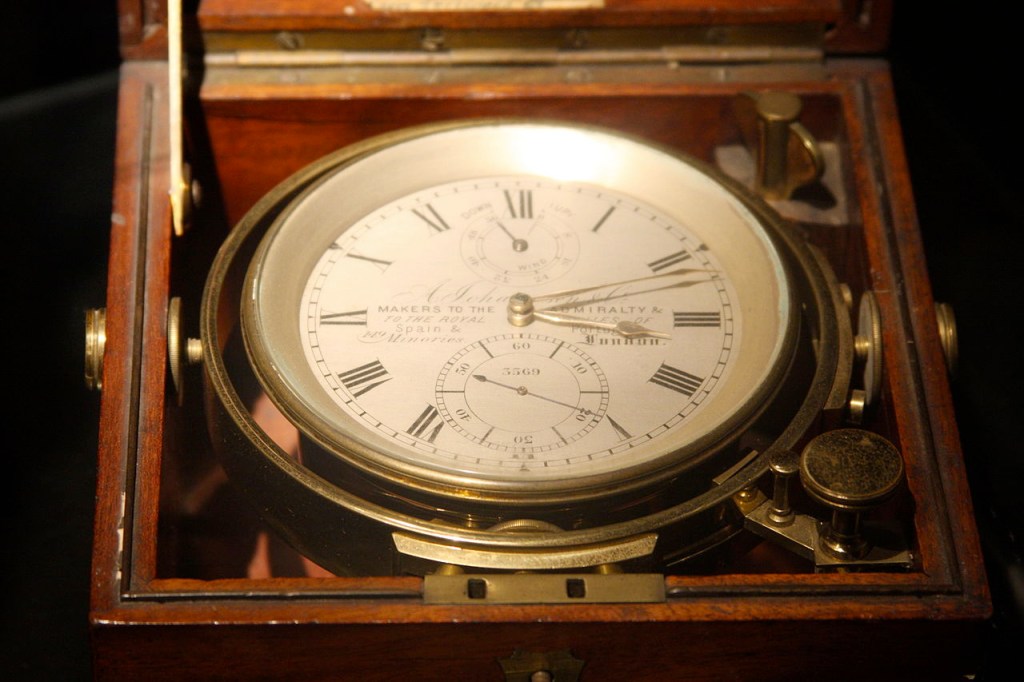 A Harrison chronometer, late 18th century. By Bjoertvedt – Own work, CC BY-SA 3.0, https://commons.wikimedia.org/w/index.php?curid=8483950