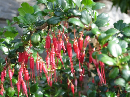 Of the first plant he encountered in California, Douglas stated (one-upping his mentor Menzies?), “Early as was my arrival on this Coast Spring had commenced. The first plant I took in my hand in full flower was Ribes Staminum, (Smith) remark able for the length and crimson splendour of its stamens, a plant not surpassed in beauty by the finest Fuchsia, for the discovery of which we are indebted to the good Sir Arch. Menzies in 1779.” The epithet Ribes staminum is way out of date. It has been suggested to me by the esteemed botanist Steve Acker, Phd. That the species described by Douglas would be Ribes divaricatum var. pubiflorum. However, given Douglas’ description it could be Fuchsiaflower Gooseberry, Ribes speciosum
