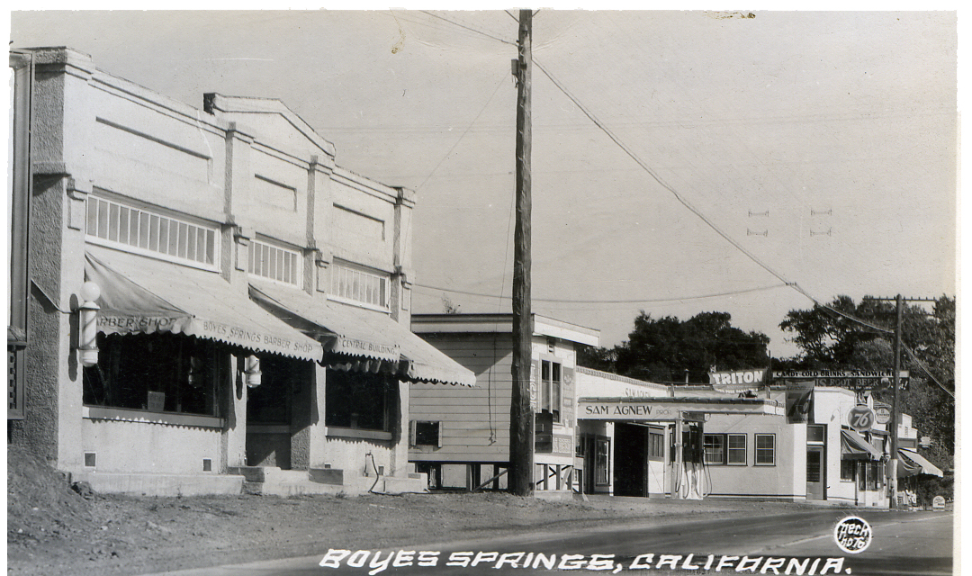 In 1923 a huge fire destroyed much of Boyes Hot Springs. Community spirit was strong, however, and rebuilding began immediately. One property owner, Bob Liaros, rebuilt on the highway.