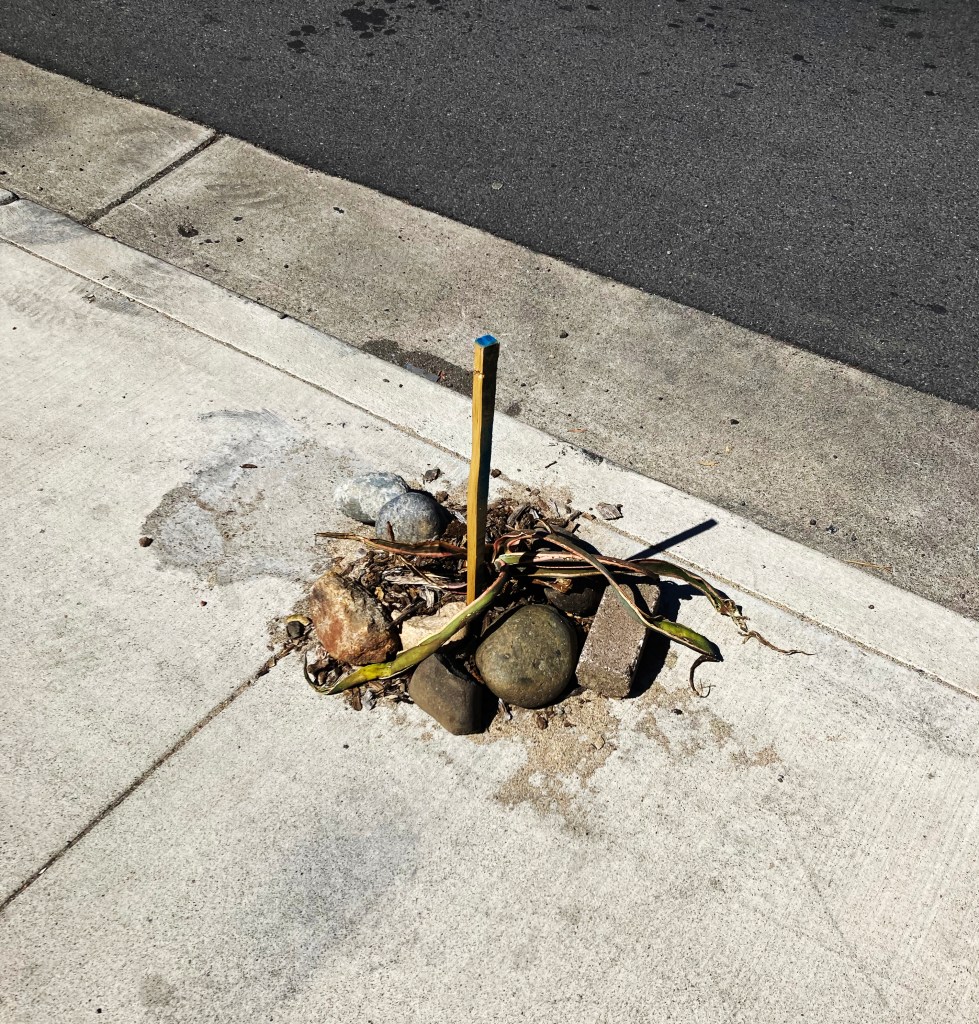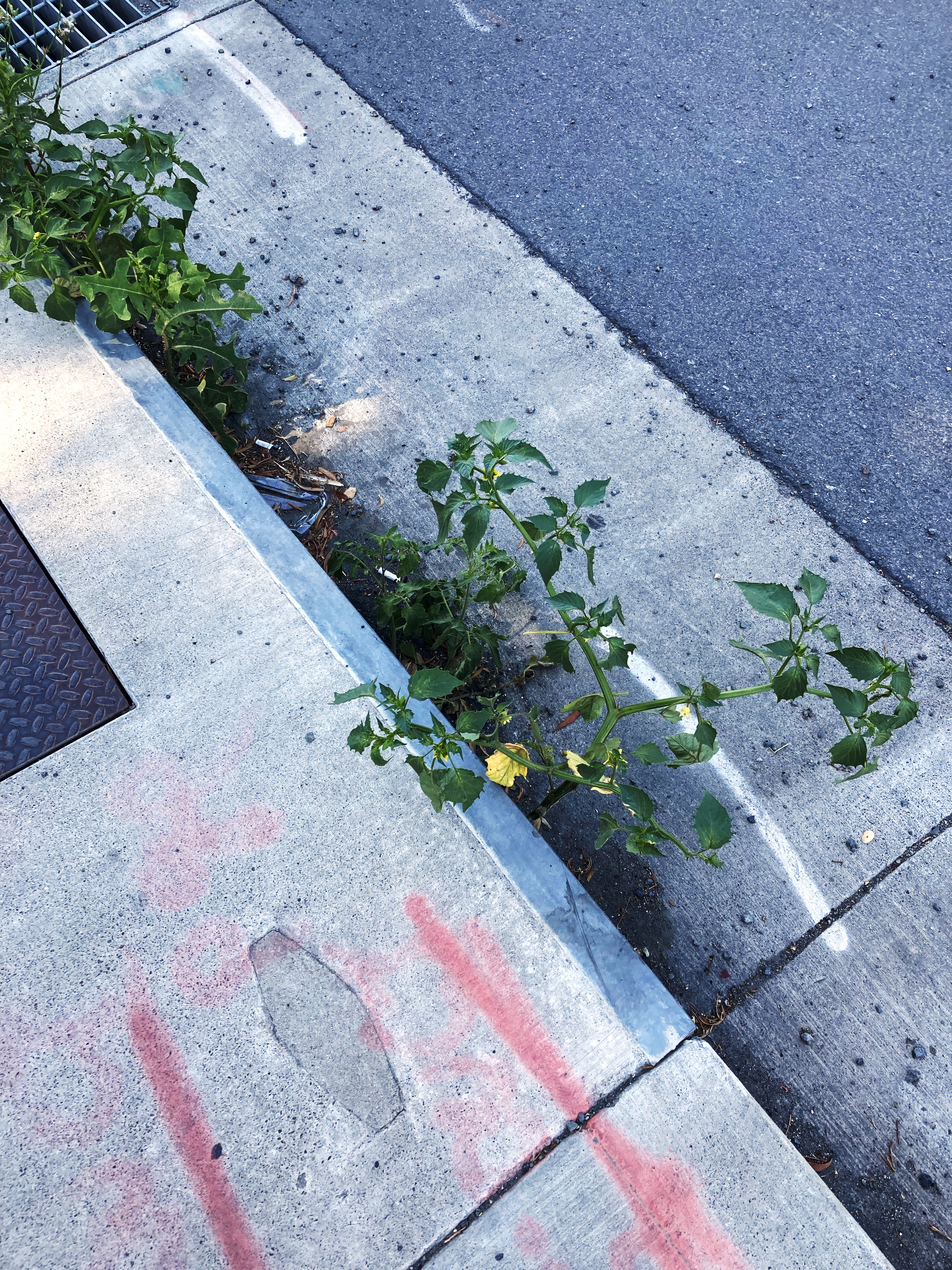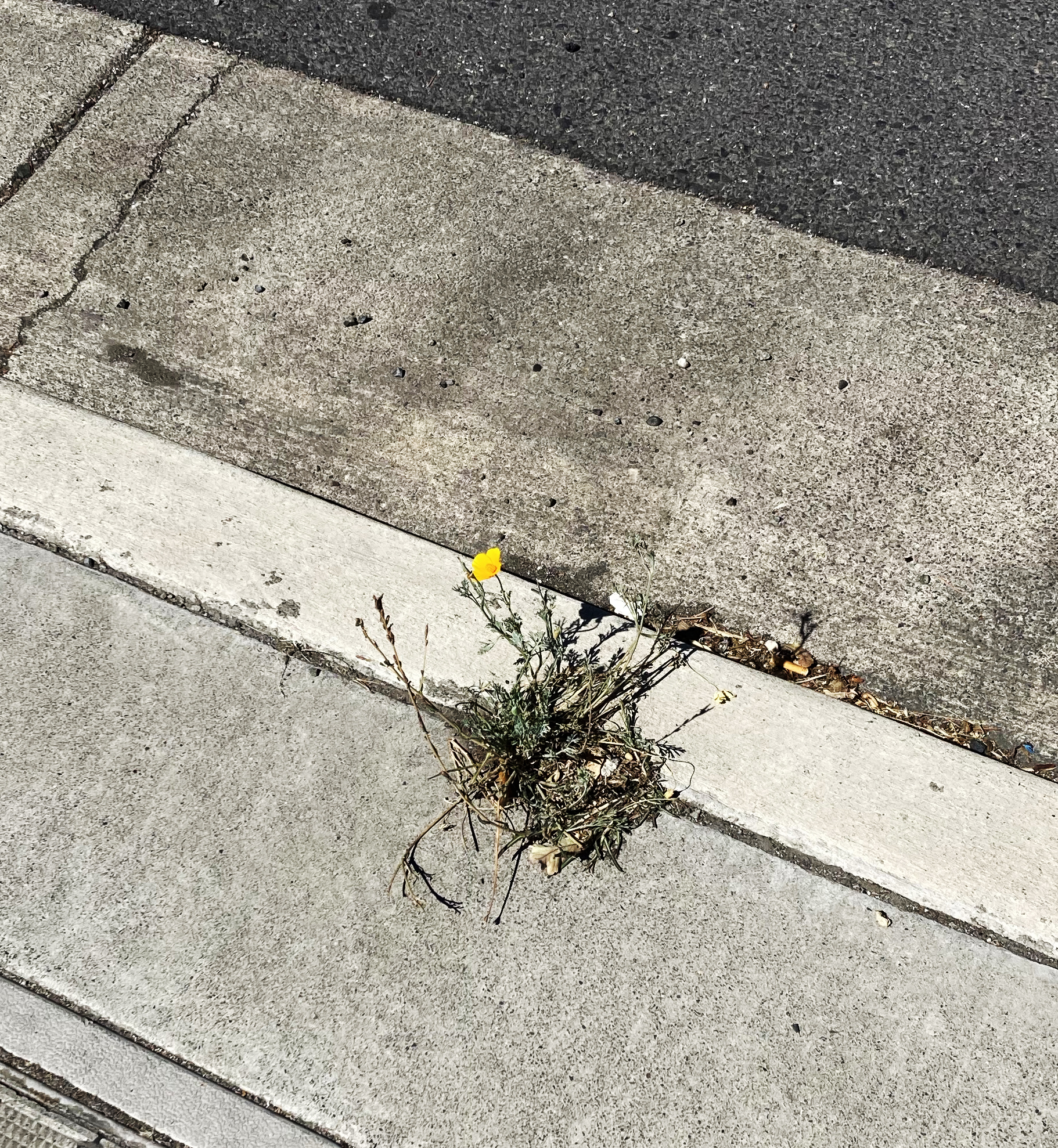 Only in Paradise: tomatoes growing from a sewer grate.Guerrilla landscaping?Grapes and “grapes.”Strawberries stake out their territory.Color escapesAgainst all odds. Standing out in a crowd.It’s Lunar New Year all over the neighborhood.Apartment dwellers find a way to grow cornCalifornia’s state flower insists on growing where it will.Tiny calendula growing from a crack in asphalt roadway.