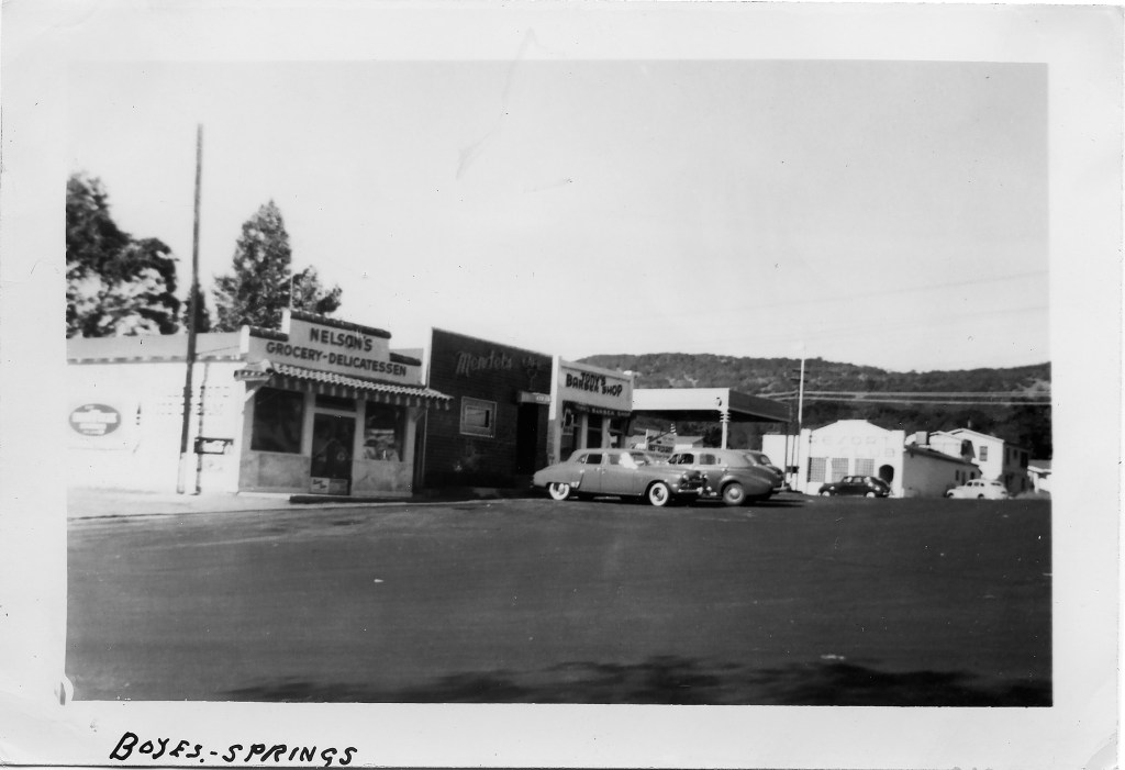 1949, looking north on the highway. Beyond the Food Center is the Boyes Springs Resort, now a parking lot. Beyond that, the original Mary’s Pizza.