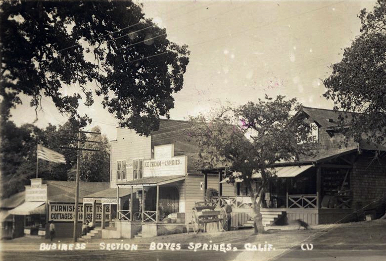 Circa 1912. At right, behind the oak, is Graham’s Store, the original site of the Boyes Hot Springs post office.
