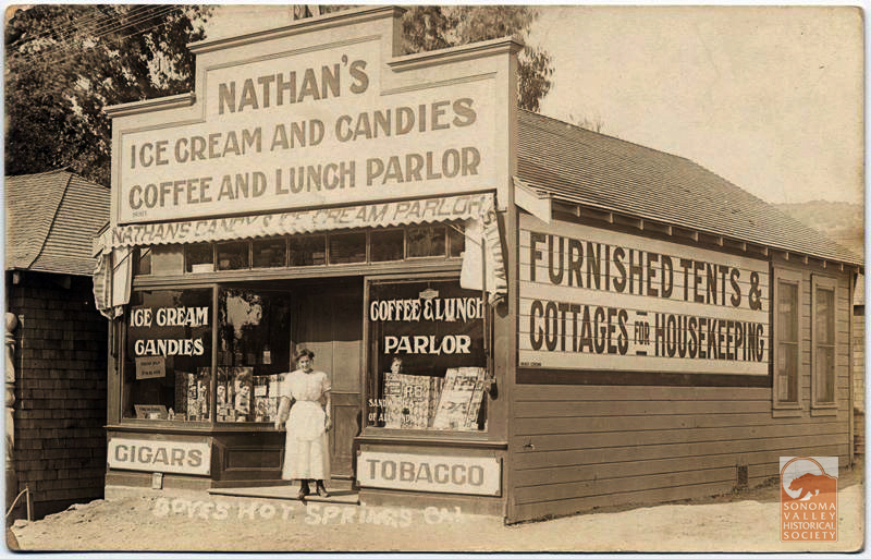 Circa 1912. At right, behind the oak, is Graham’s Store, the original site of the Boyes Hot Springs post office.