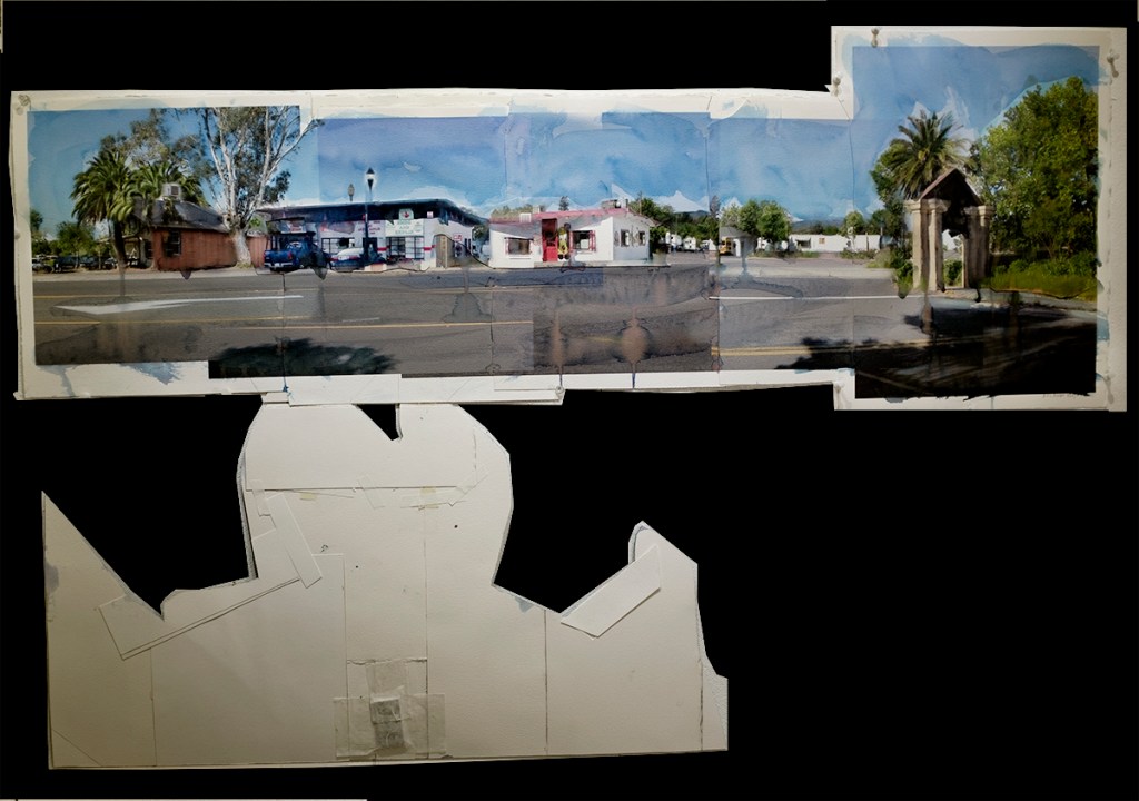 In 2021, as part of my Valley of the Moon Main Stem project, I thought of using the iconic Happy Dog as a grand entry arch. Why not? It would be more meaningful than what we got. The collage is 45.5″x15.”