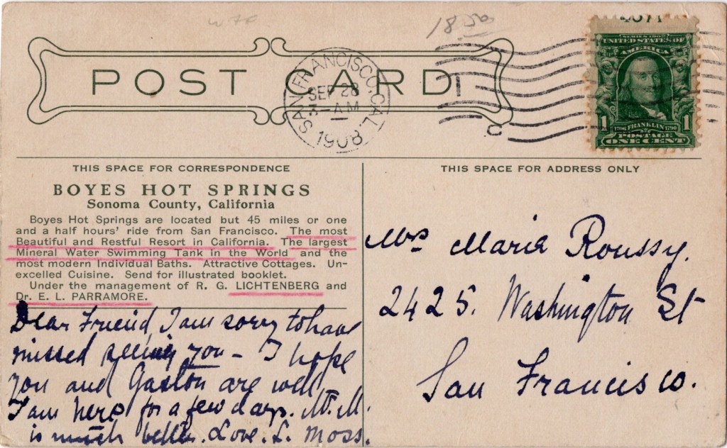 Richard O’Neil was a well-known commercial photographer in Sonoma, from the 1940s through the 1960s. He photographed many weddings, school portraits, and newspaper pieces. This weirdly green image is probably from the mid 1960s. More about the Bath House here.
