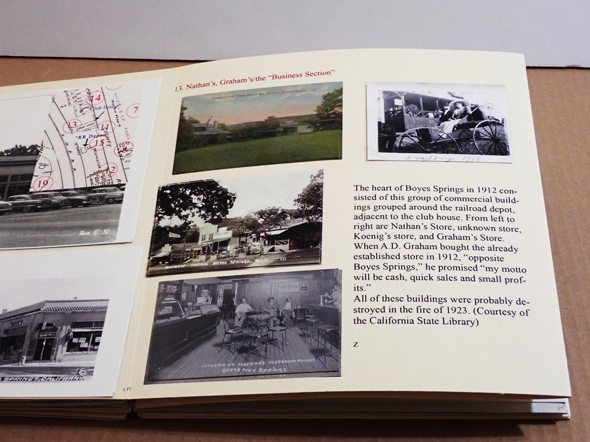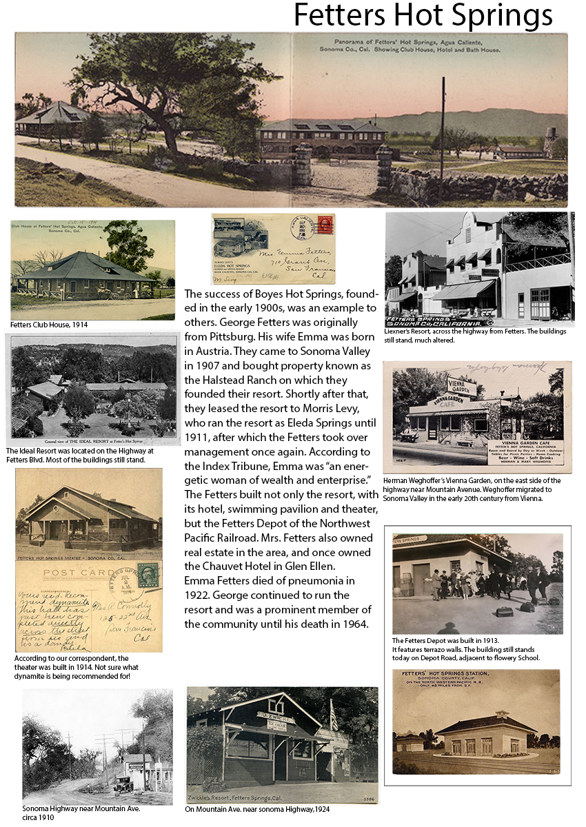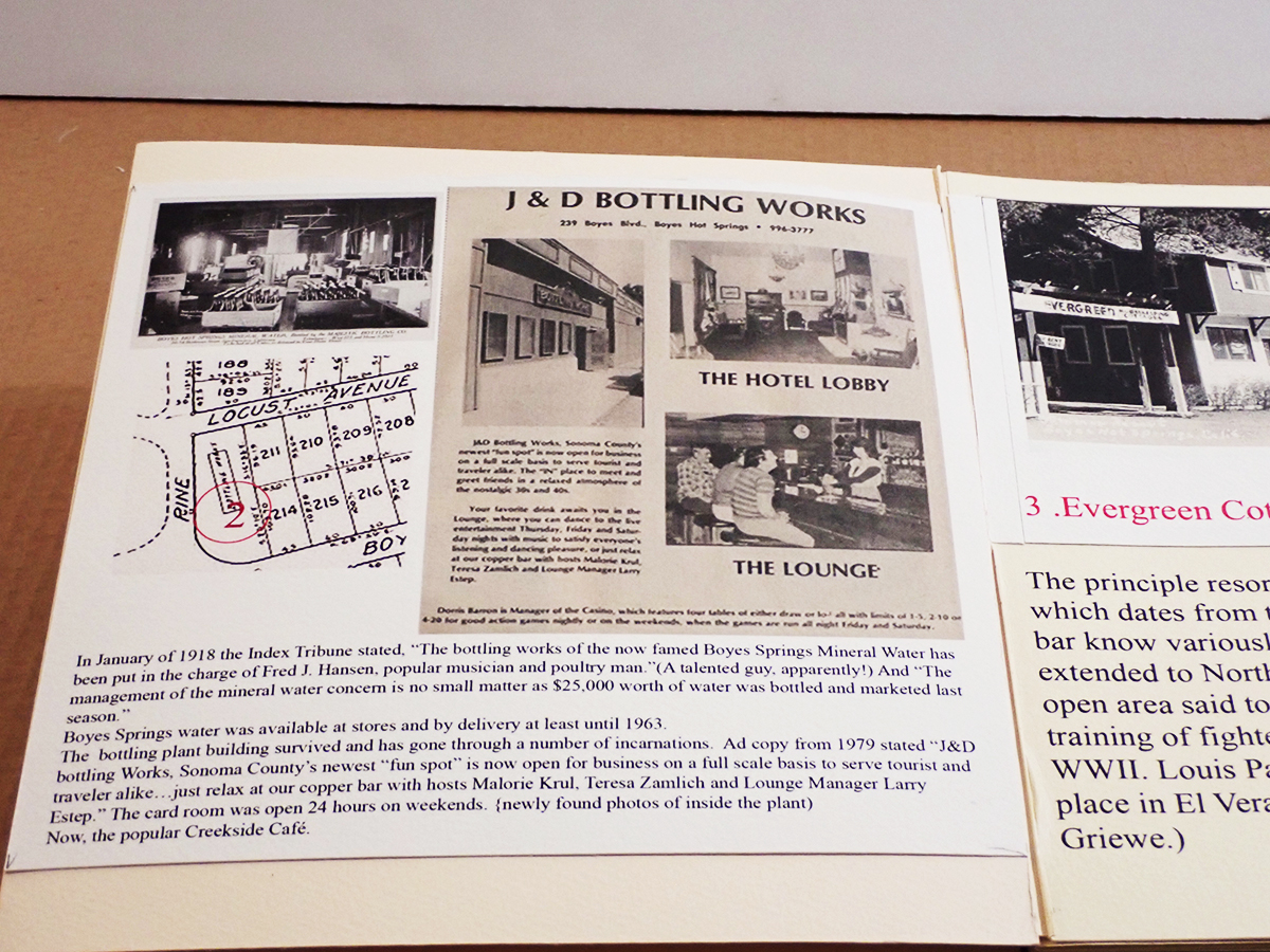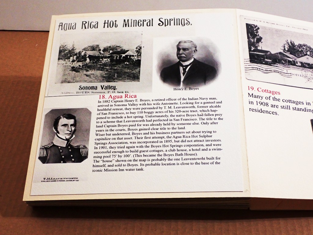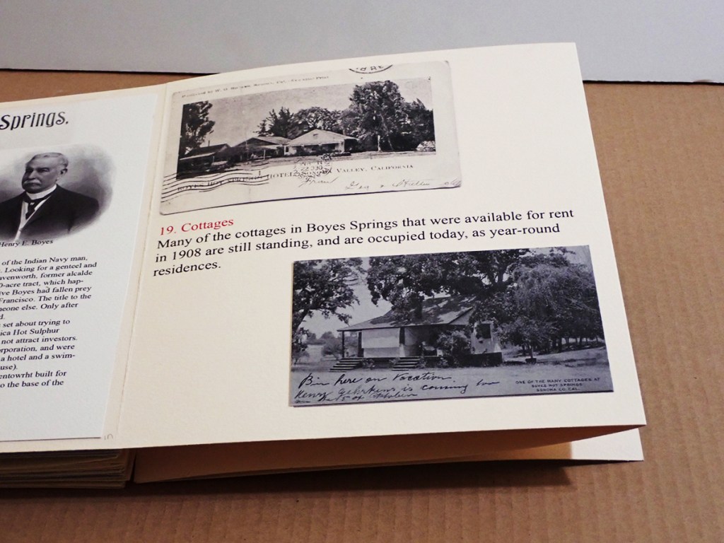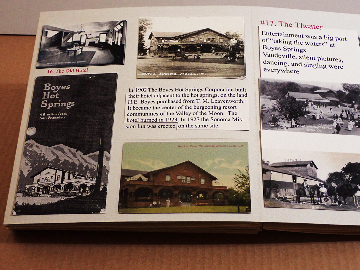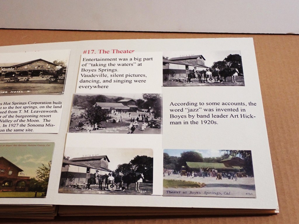 A historic walking tour of Boyes Hot Springs requires a bit of imagination: Many buildings are gone, but they have left traces in the form of photographs and other artifacts, as well as memories. Some day you will be invited to participate, in The Real World, as they say. (Click to enlarge images.)