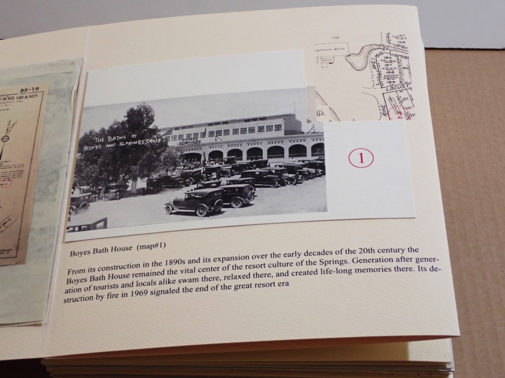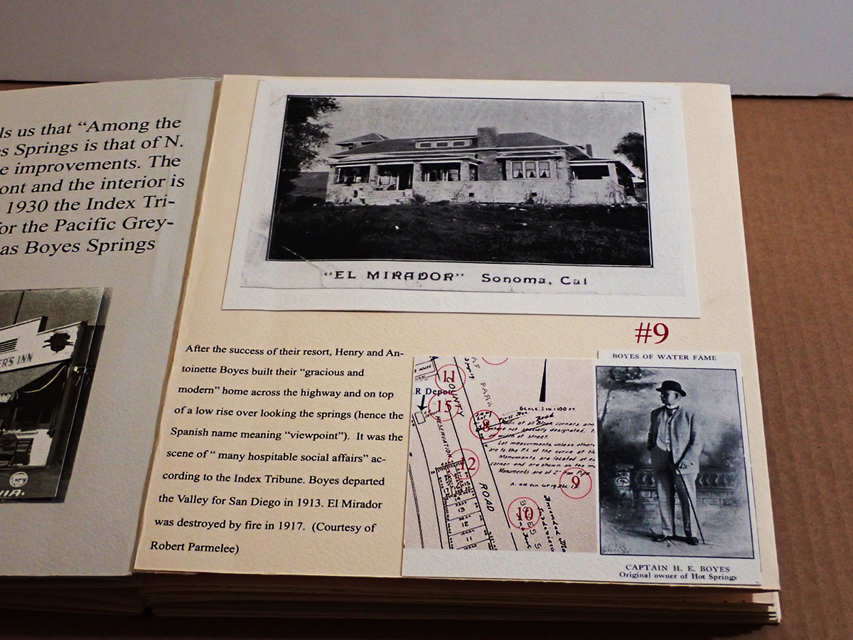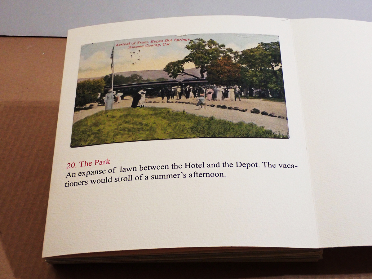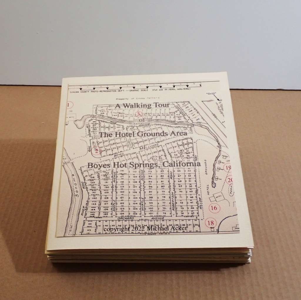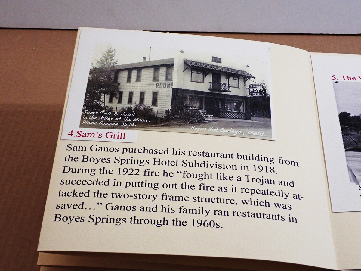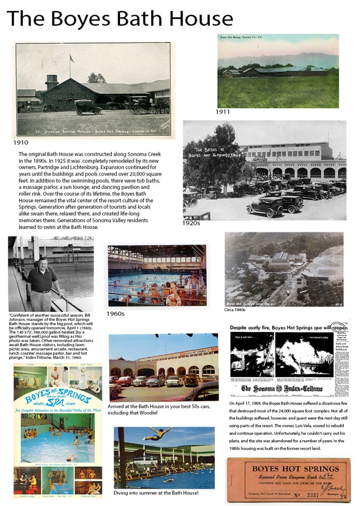 A historic walking tour of Boyes Hot Springs requires a bit of imagination: Many buildings are gone, but they have left traces in the form of photographs and other artifacts, as well as memories. Some day you will be invited to participate, in The Real World, as they say. (Click to enlarge images.)