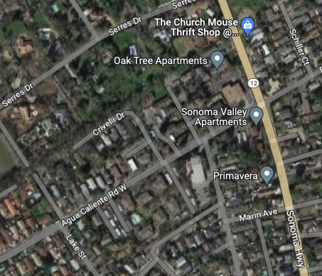 Highway 12 through Boyes Hot Springs, Fetters Hot Springs, and Agua Caliente, California, though a heavily used commercial and residential street, had almost no sidewalks until 2009/2010. Dirt shoulders for walking was not a problem when traffic was light. Even at the height of the resort era (1950s), people would ride horses down the middle of the highway. That’s how quiet it could be.
