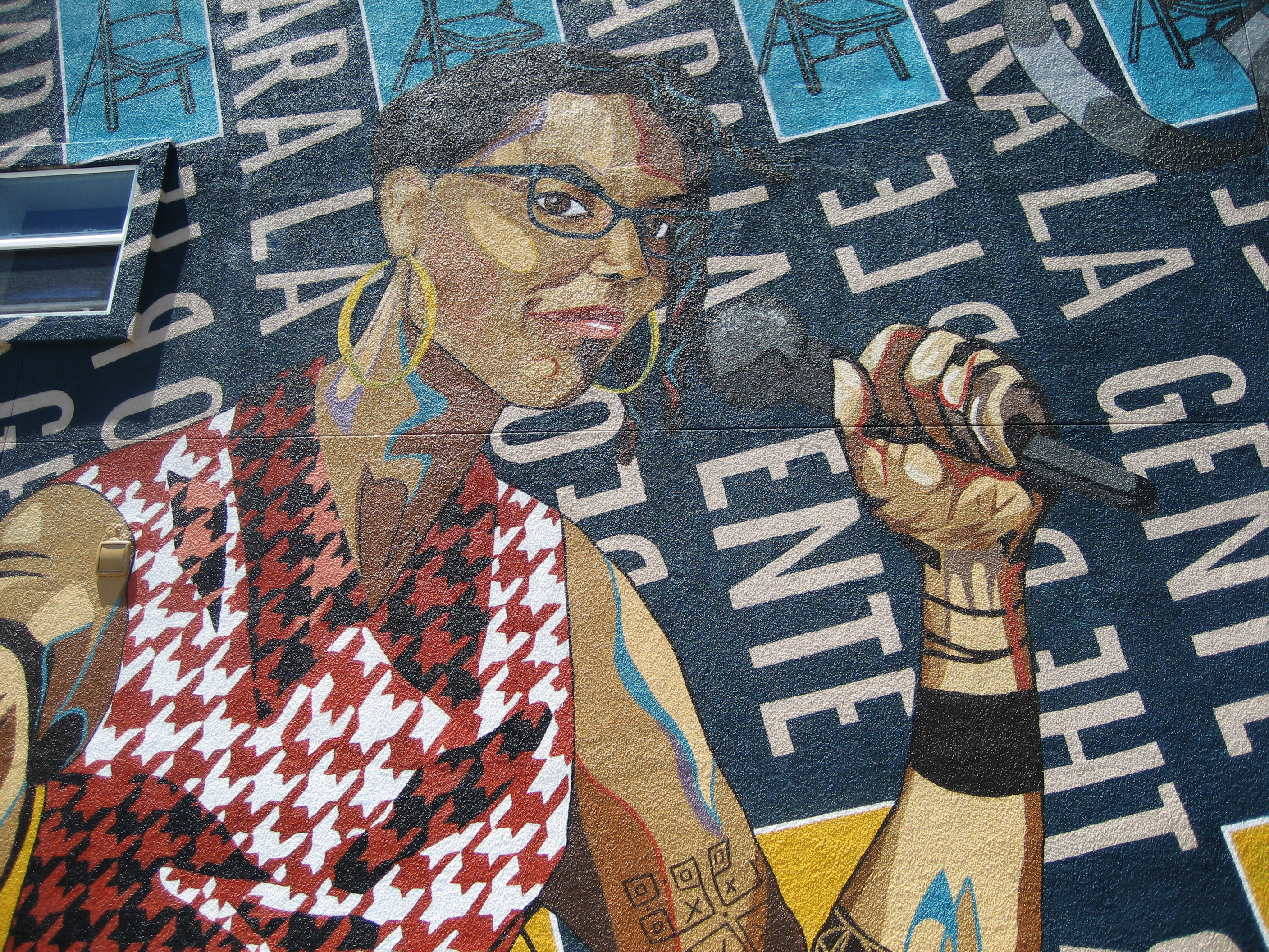 The building at 17400 Sonoma Highway displays yet another Monarch Project mural. Completed in June 2021, it features an image of Dmitra Smith, “…a powerful force fighting against racism in Sonoma County,” according to their website. “Ms. Smith is the former Chair of the Sonoma County Commission on Human Rights, and was the program manager for the Junior Commission, having mentored over 100 Sonoma County students between 2013- 2020. Smith is a co-founder of the essential workers’ mutual aid collective Food for All – Comida para Todos.”