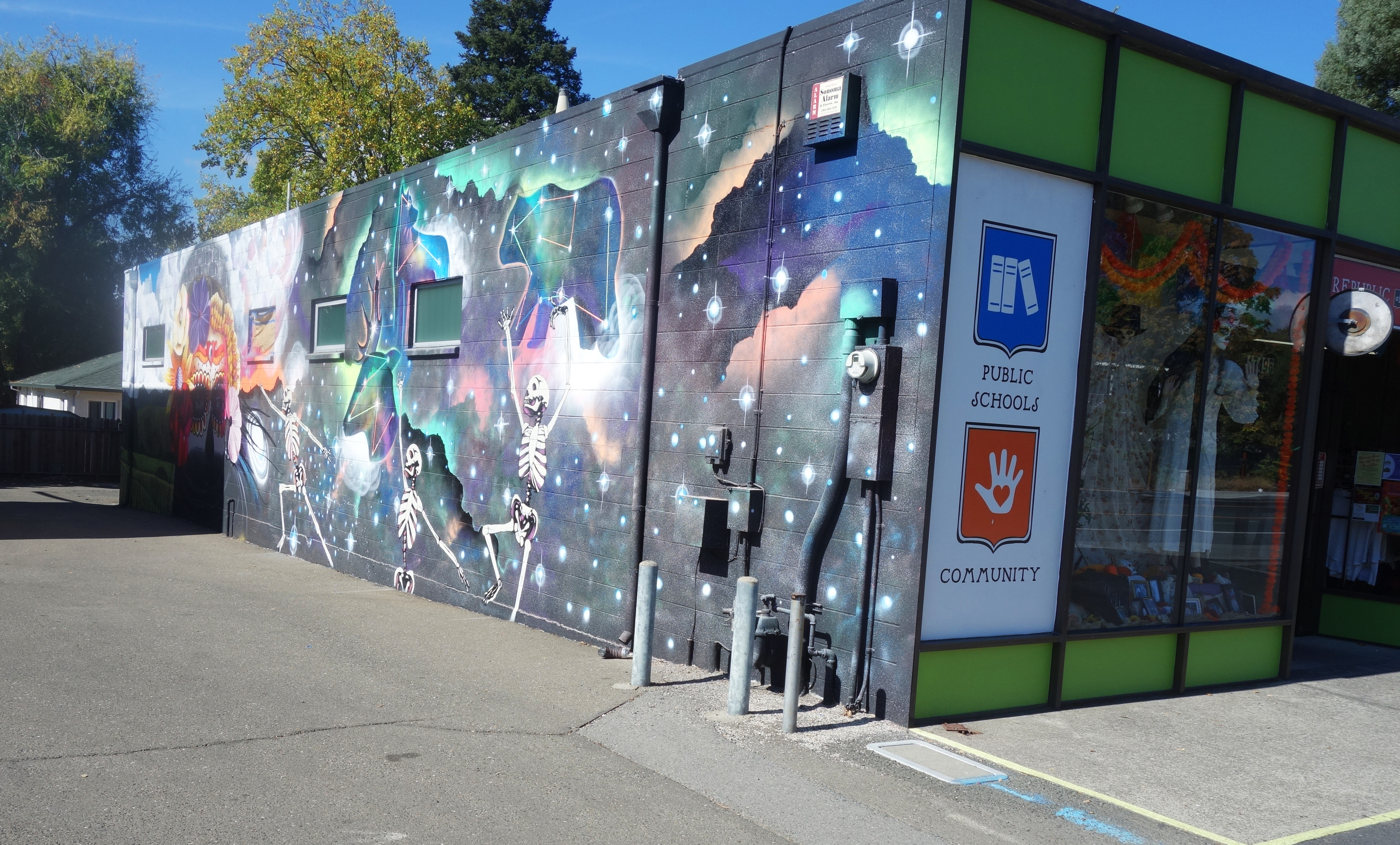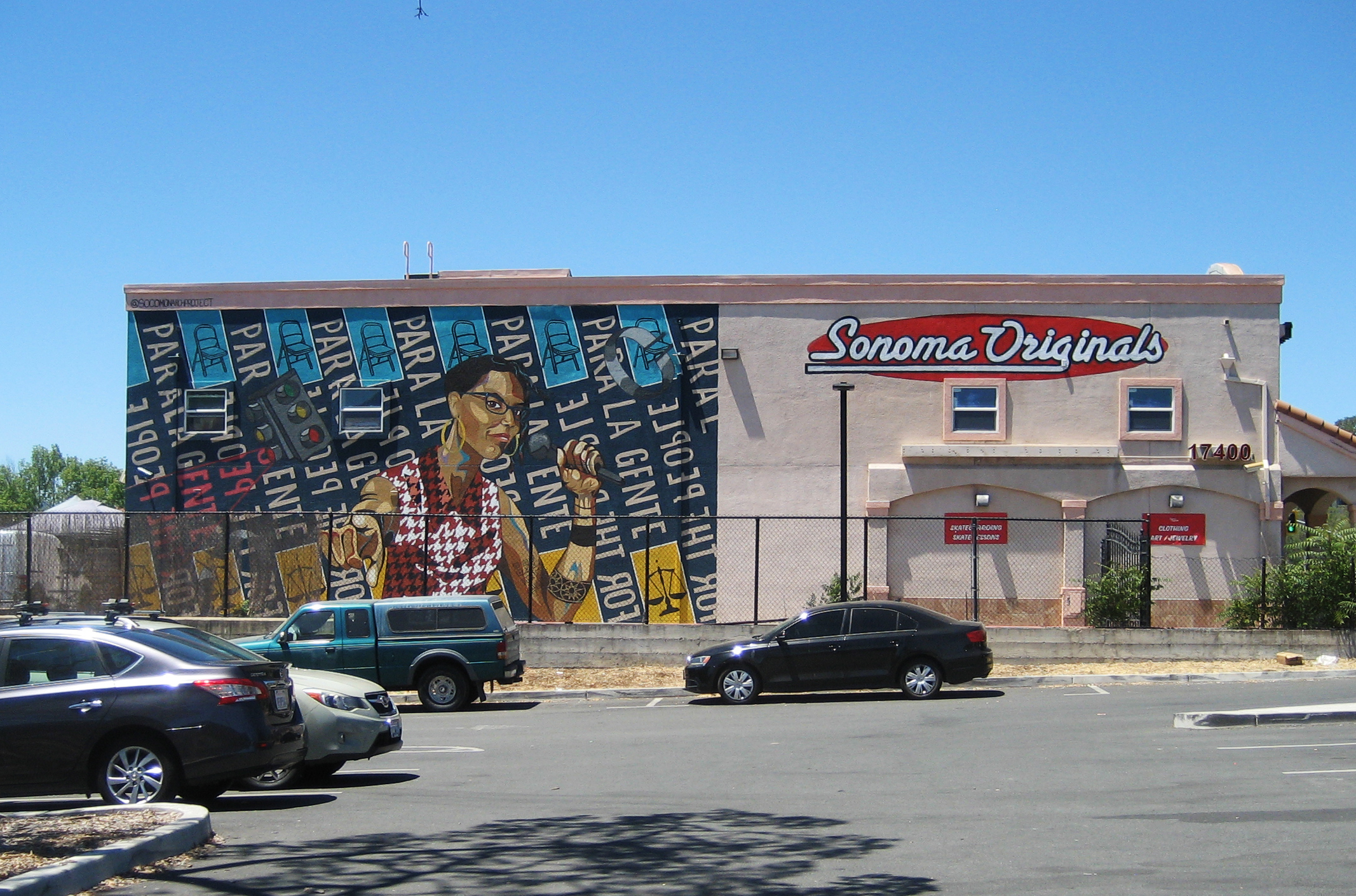 At the time the mural was painted, the building was the home of Sonoma Originals skate shop. Sadly, it is now empty.