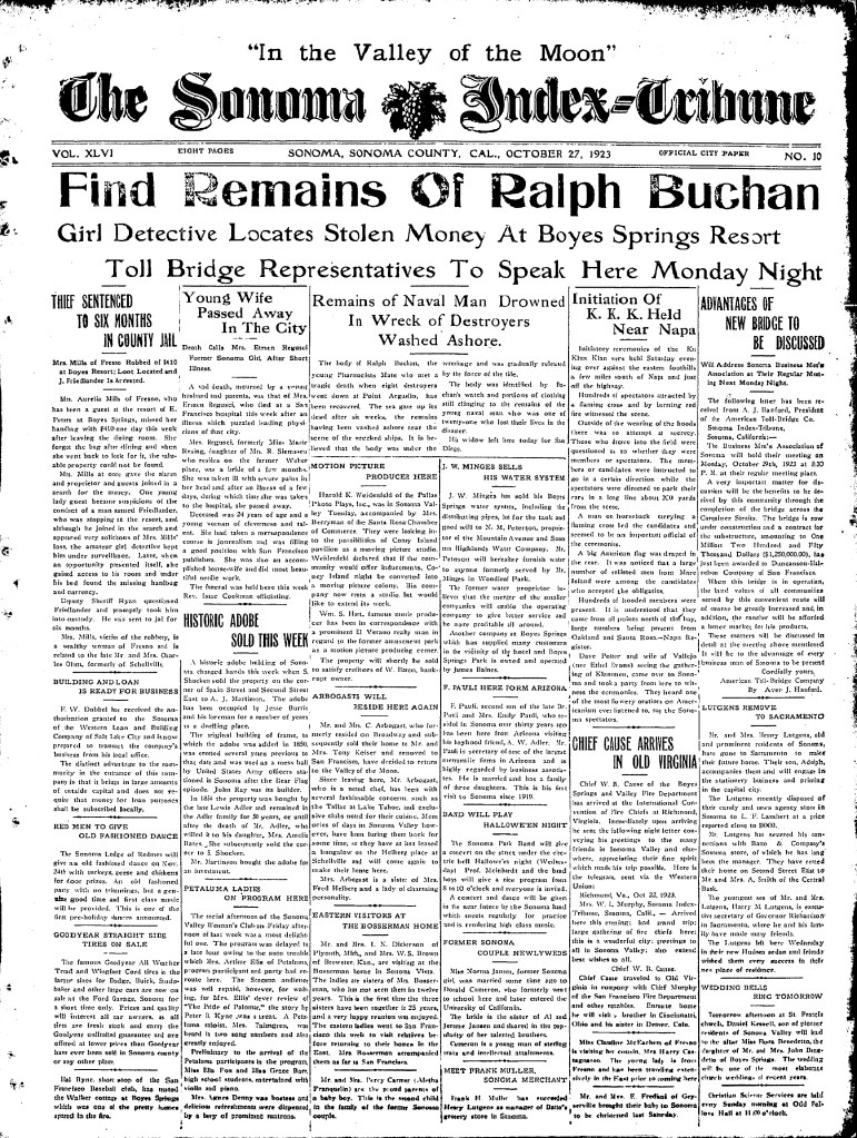 Sonoma Index Tribune and many images courtesy of the Sonoma Valley Historical Society