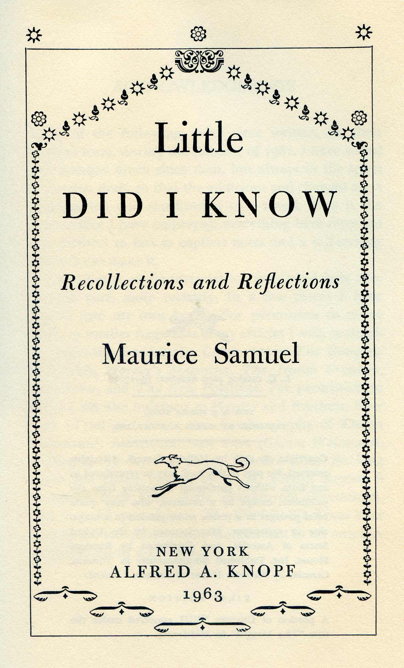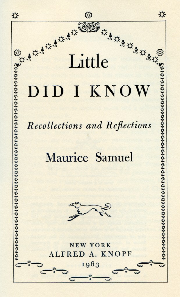 In 1963 Maurice published a memoir entitled Little Did I Know, the first sentence of which reads