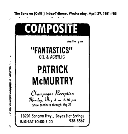 Patrick McMurtry was a highly original artist, a great friend, and a valued member of the Springs community. We miss him a lot.