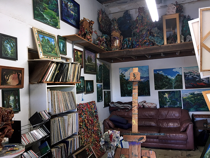 In his studio hidden deep in the woods, Patrick McMurtry creates paintings inspired by a vivid imagination, like what a person alone is apt to see hiding in shadowed cubbys deep in the brush.